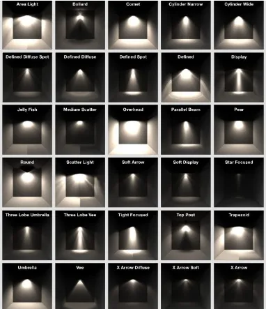 เนื่องจากเอฟเฟกต์แสงที่หลากหลายขึ้นอยู่กับมุมของลำแสงขนาดต่างๆ